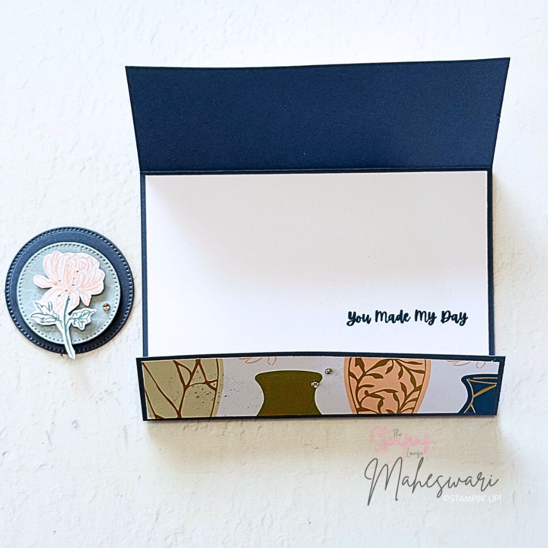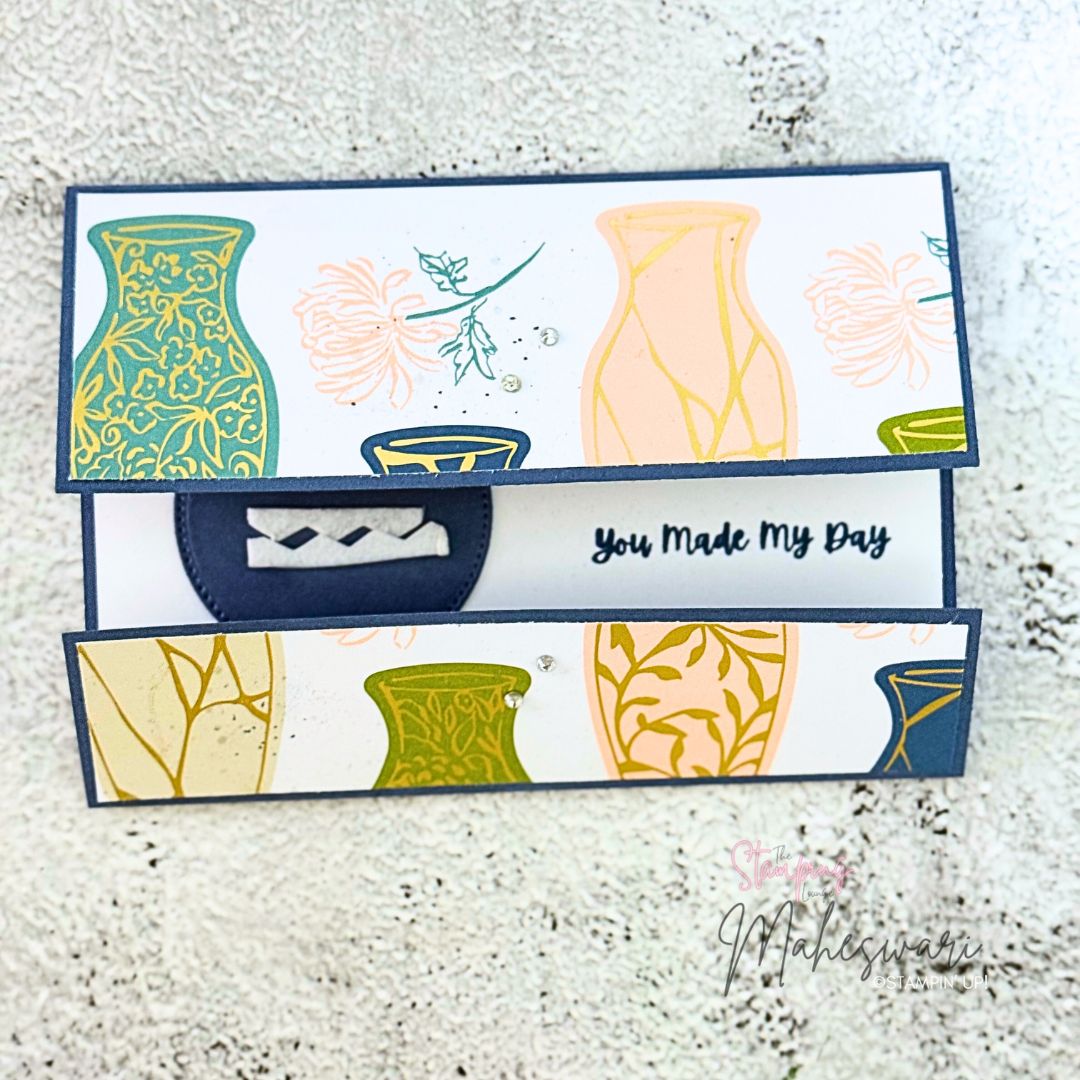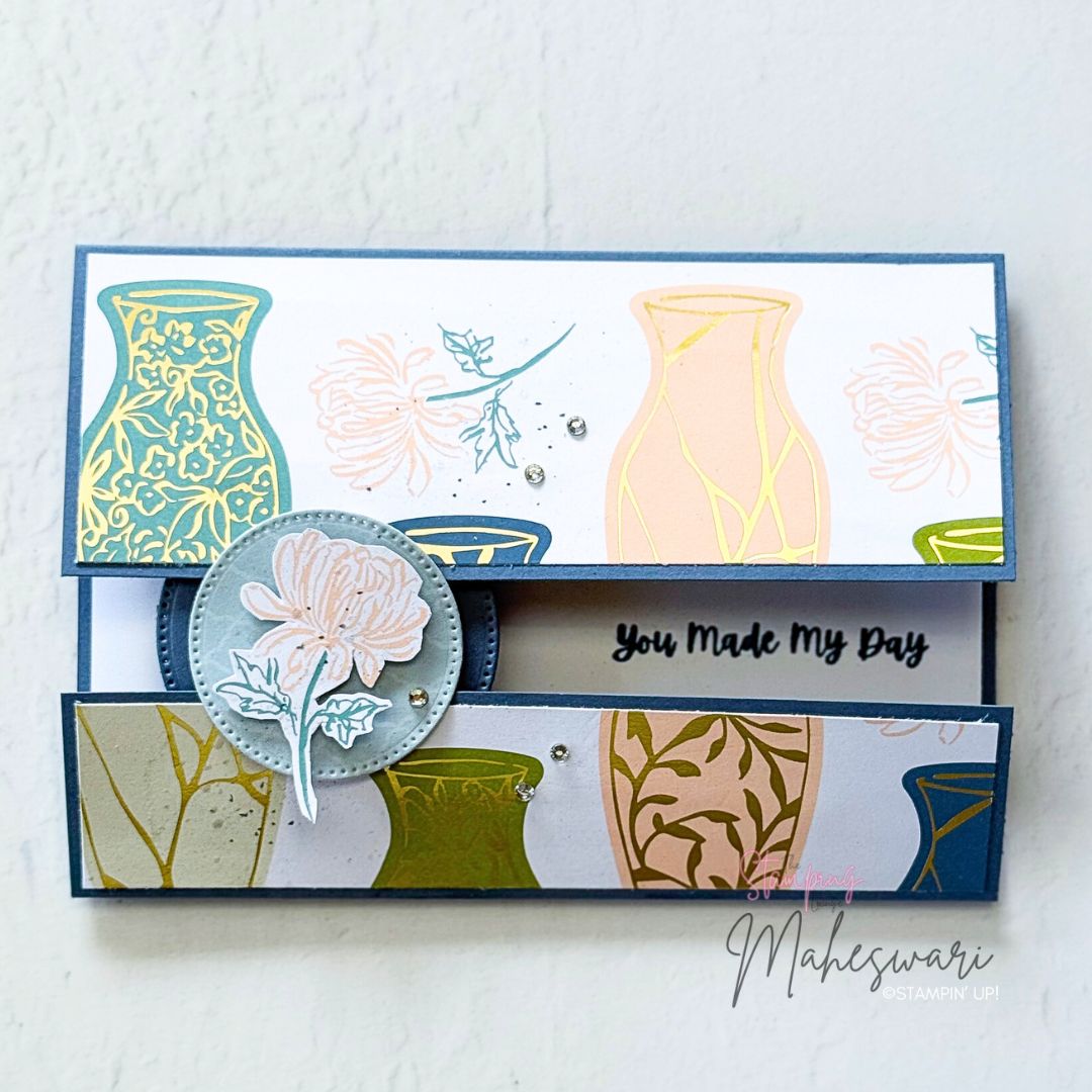 - When cutting your DSP, pay attention to the pattern direction. Keeping the design continuous makes the slider movement look smooth and visually pleasing.Great Fold to use up scrap pieces of Designer Series Paper or cardstock.